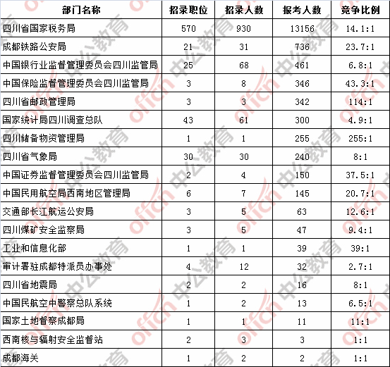 為幫助廣大考生更清晰的了解今日?qǐng)?bào)名情況,四川中公網(wǎng)校整理了已審核通過(guò)人數(shù)的部門,此數(shù)據(jù)供廣大考生參考: