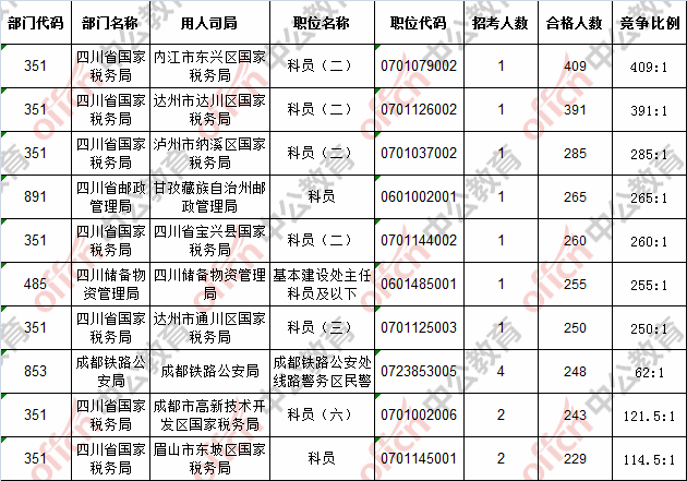 首日?qǐng)?bào)名通過(guò)審核人數(shù)前十的職位主要集四川省國(guó)家稅務(wù)局等部門,具體信息如下: