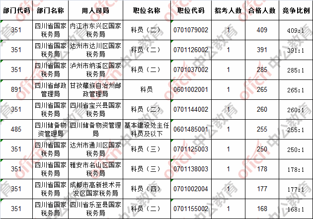 截止到19日16時(shí),競(jìng)爭(zhēng)比例的職位為‘內(nèi)江市東興區(qū)國(guó)家稅務(wù)局科員(二)’一職,招錄1人,截止到19日16時(shí)通過(guò)人數(shù)為409人。