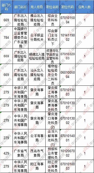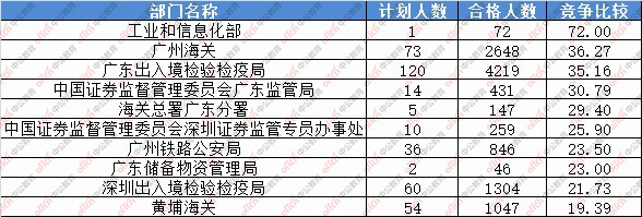報(bào)名通過審核人數(shù)前十的職位主要集中在深圳海關(guān)、廣東省國家稅務(wù)局、廣州海關(guān),具體信息如下: