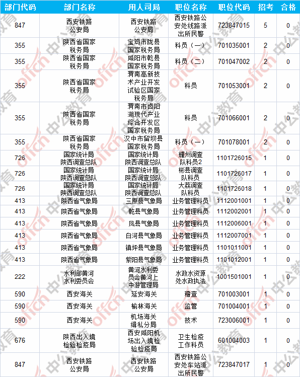 截止到19日16時,工作地點在陜西的職位共有21個無人報考,占全部職位的7.45%。下面是無人報考職位一覽表,陜西中公網(wǎng)校專家建議廣大考生多關注一些較冷職位,避免激烈競爭,結合自身條件,找到屬于自己的職位。