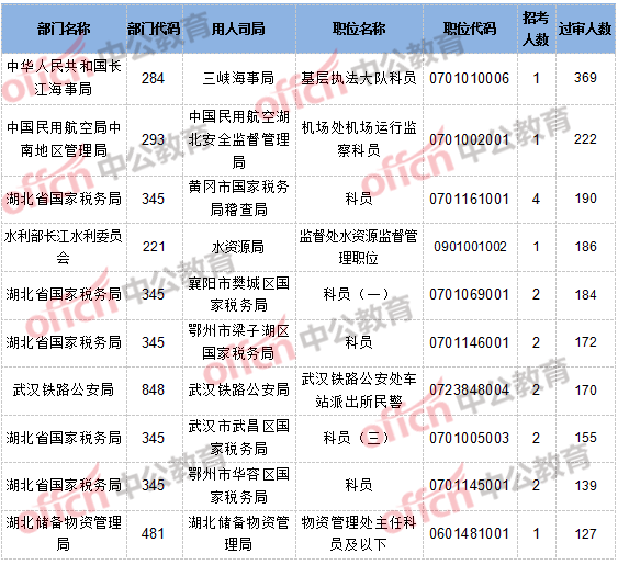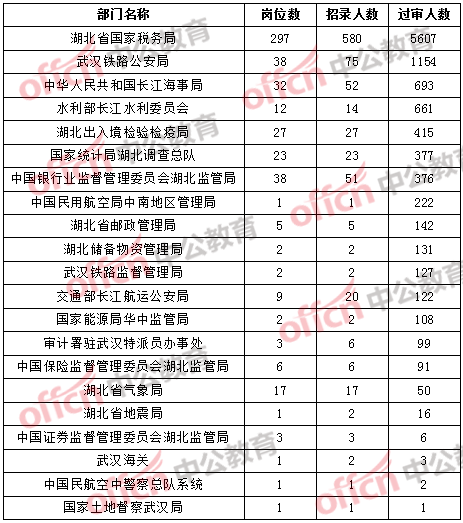 【截至19日16時】2017國考報名湖北10304人通過審核,最熱崗位369:1