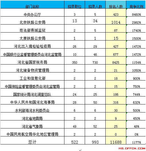 為幫助廣大考生更清晰的了解今日?qǐng)?bào)名情況,河北中公網(wǎng)校整理了審核通過(guò)人數(shù)前十位的部門(mén)以及競(jìng)爭(zhēng)比例最激烈的十大部門(mén),供廣大考生參考: