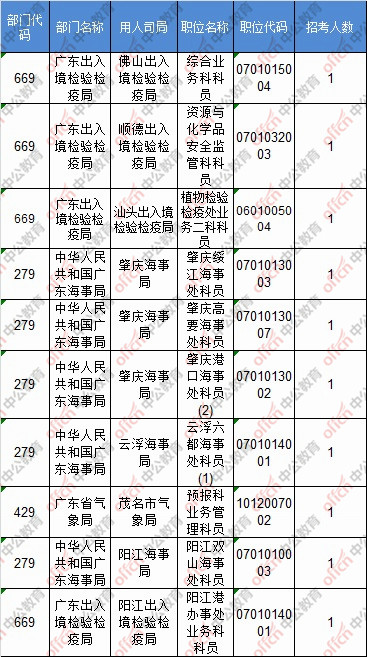 截止到20日8時,工作地點在廣東的職位共有80個無人報考,占全部職位的7.6%。下面是無人報考職位一覽表,中公網(wǎng)校專家建議廣大考生多關(guān)注一些較冷職位,避免激烈競爭,結(jié)合自身條件,找到屬于自己的職位。