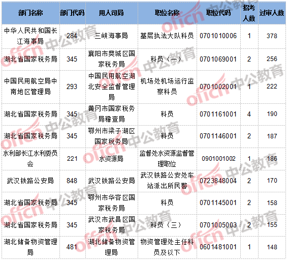 | 湖北省國(guó)家稅務(wù)局 | 345 | ??悼h國(guó)家稅務(wù)局 | 科員(二) | 0701065002 | 2 |