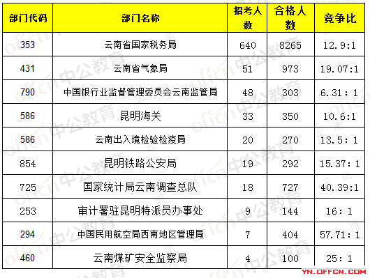 為幫助廣大考生更清晰地了解今日報名情況,云南中公網(wǎng)校整理了審核通過人數(shù)部門排名,供廣大考生參考: