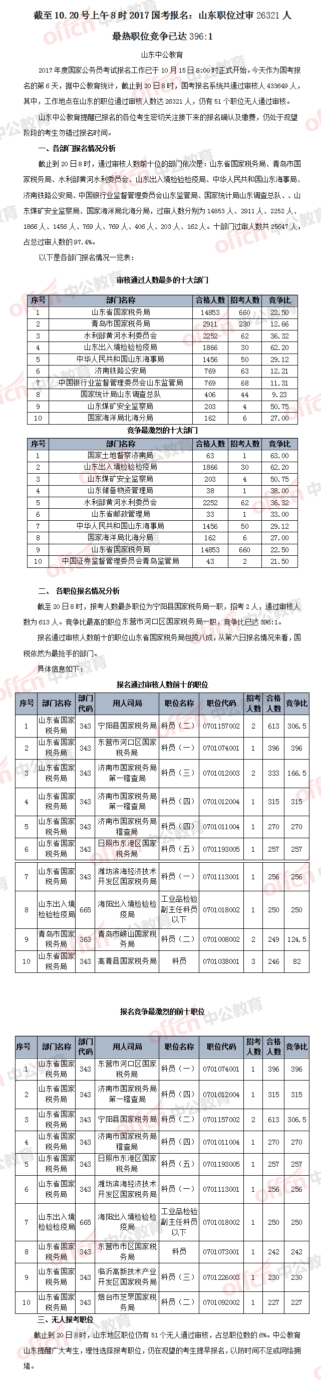 【截至20日8時(shí)】2017國(guó)考山東職位過審26321人 最熱職位競(jìng)爭(zhēng)已達(dá)396:1