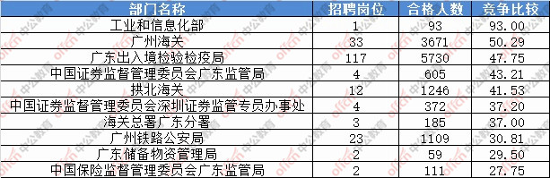 為幫助廣大考生更清晰的了解今日報(bào)名情況,廣東中公網(wǎng)校整理了審核通過人數(shù)前十位的部門以及競爭比例最激烈的十大部門,供廣大考生參考: