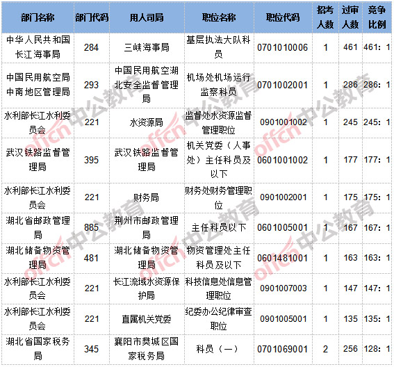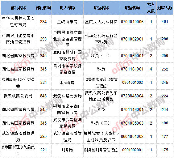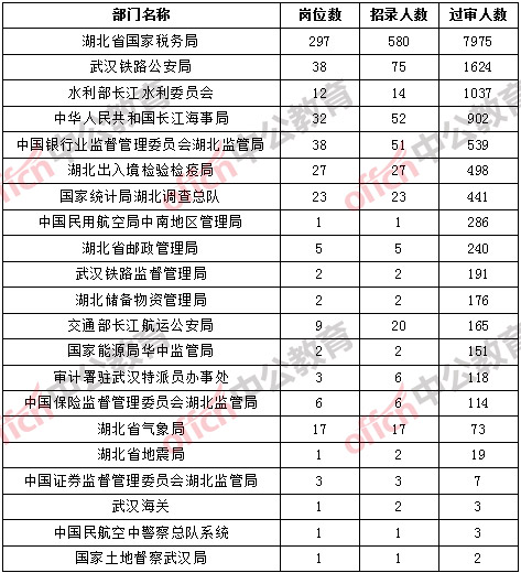 【截至20日16時】2017國考報名湖北14564人通過審核,46個職位無人通過審核