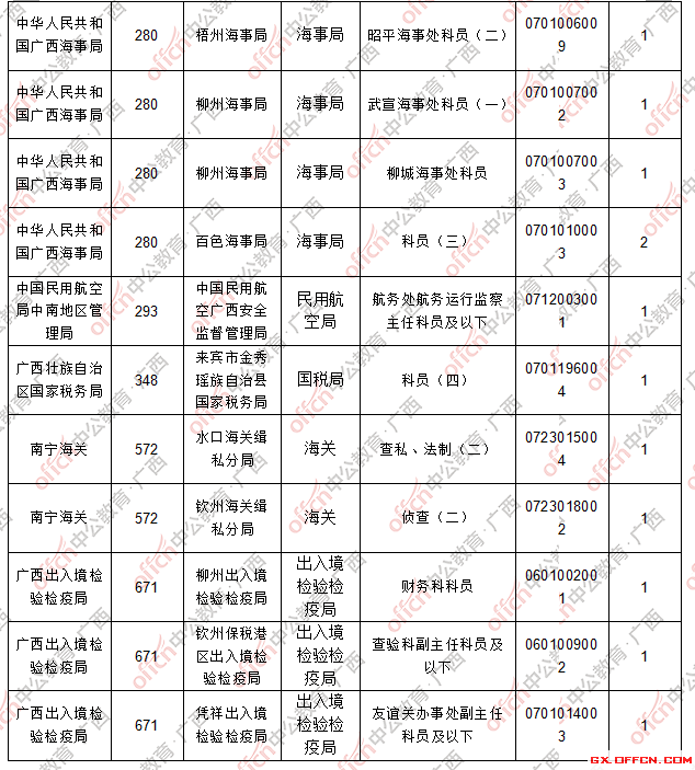 截止到21日8時(shí),工作地點(diǎn)在廣西的職位共有23個(gè)無(wú)人報(bào)考,占全部職位的3.6%。下面是部分廣西無(wú)人報(bào)考職位一覽表,廣西中公網(wǎng)校專家建議廣大考生結(jié)合自身?xiàng)l件,根據(jù)自己的實(shí)際情況找到屬于自己的職位,避免激烈競(jìng)爭(zhēng)。