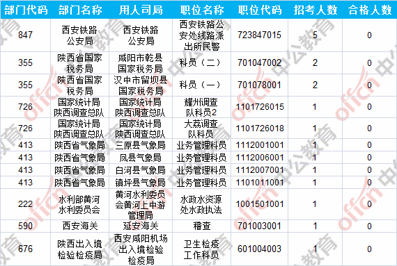 報(bào)名通過審核人數(shù)前十的職位主要集中在陜西出入境檢驗(yàn)檢疫局、陜西省國(guó)家稅務(wù)局、中國(guó)民用航空局西北地區(qū)管理局等部門,具體信息如下: