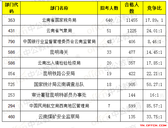 為幫助廣大考生更清晰地了解今日?qǐng)?bào)名情況,云南中公網(wǎng)校整理了審核通過(guò)人數(shù)部門排名,供廣大考生參考:
