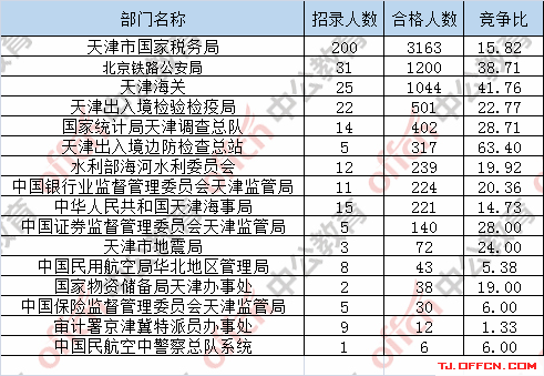 截止到21日16時(shí),通過審核人數(shù)前三位的部門依次是:天津市國(guó)家稅務(wù)局、北京鐵路公安局、天津海關(guān),三部門通過審核總?cè)藬?shù)達(dá)5407人,占通過審核總?cè)藬?shù)的70.7%。