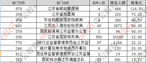 為幫助廣大考生更清晰的了解今日報(bào)名情況,江蘇中公網(wǎng)校整理了審核通過人數(shù)前十位的部門以及競爭比例最激烈的十大部門,供廣大考生參考: