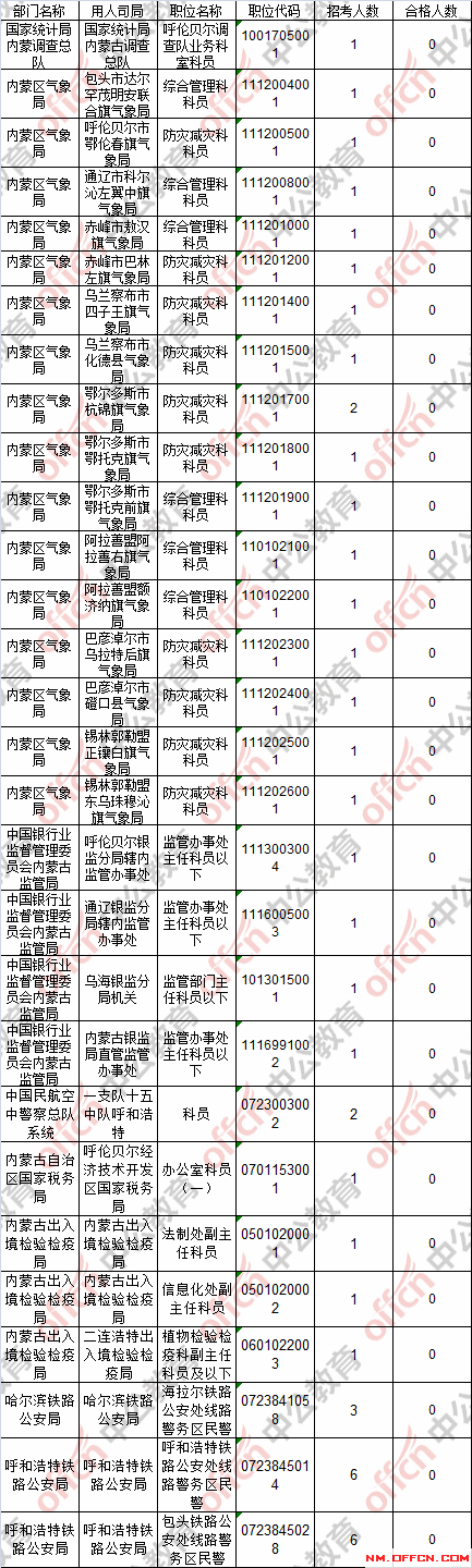截止到21日16時(shí),工作地點(diǎn)在內(nèi)蒙古29個職位無人報(bào)考。具體職位如下: