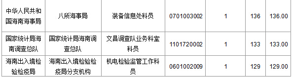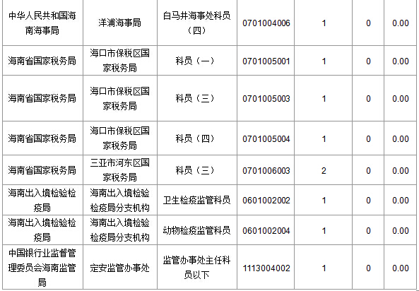 報(bào)名通過審核人數(shù)前十的職位主要集中在海南出入境檢驗(yàn)檢疫局、海南省國家稅務(wù)局、中華人民共和國海南海事局等部門,具體信息如下: