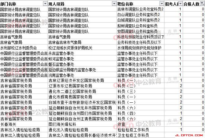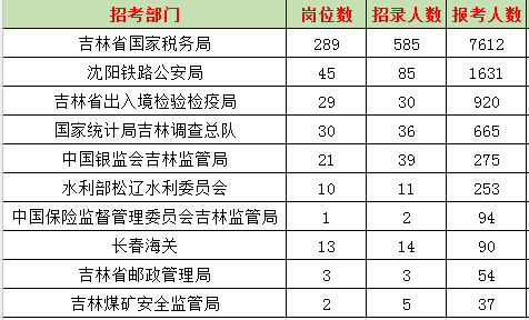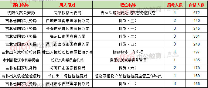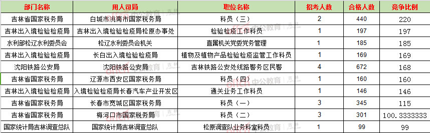 報(bào)名通過審核人數(shù)前十的職位主要集中在吉林省國稅局和吉林出入境檢驗(yàn)檢疫局,具體信息如下: