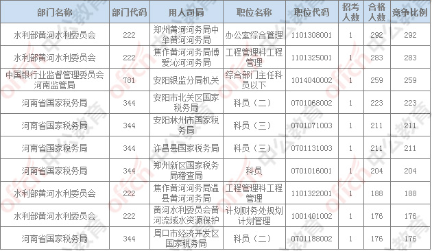 報(bào)名通過(guò)審核人數(shù)排名前列的職位主要集中在鄭州鐵路公安局、河南省國(guó)家稅務(wù)局,水利部黃河水利委員會(huì),具體信息如下: