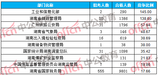 為幫助廣大考生更清晰的了解今日報名情況,湖南中公網(wǎng)校整理了審核通過人數(shù)前十大部門以及競爭比例最激烈的十大部門,供廣大考生參考: