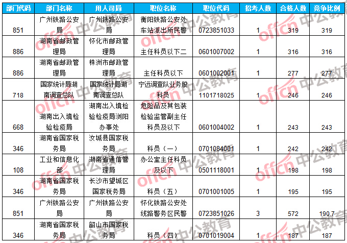 報(bào)名競(jìng)爭(zhēng)最激烈的前十的職位