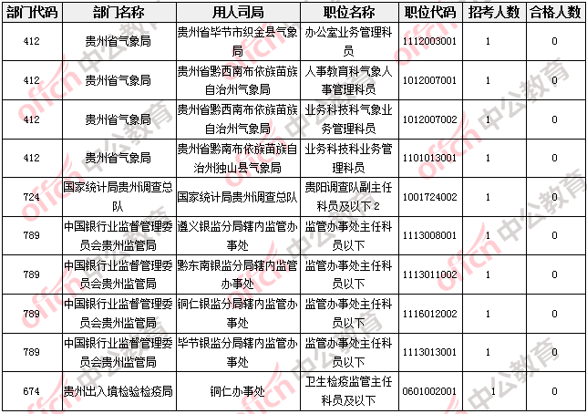 截至20日16時,貴州招錄部門中各大部門均有人員報考。