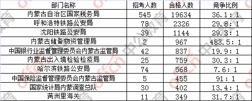為幫助廣大考生更清晰的了解今日報(bào)名情況,內(nèi)蒙古中公教育整理了審核通過人數(shù)前十位的部門,供廣大考生參考: