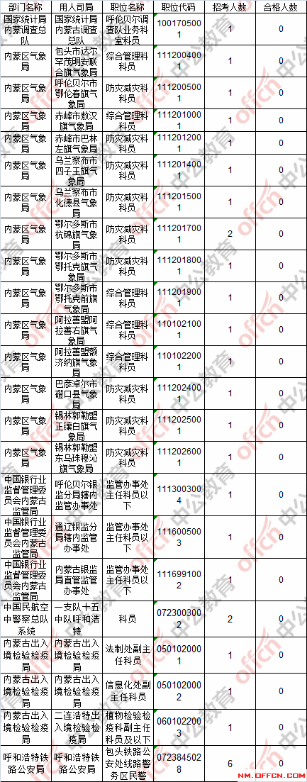 截止到22日16時(shí),工作地點(diǎn)在內(nèi)蒙古23個(gè)職位無人報(bào)考。具體職位如下: