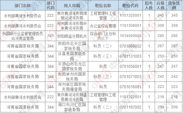 截止22日16時,招錄比例的職位為焦作黃河河務(wù)局博愛沁河河務(wù)局工程管理科工程管理一職,招錄1人,截止22日16通過人數(shù)為345人。