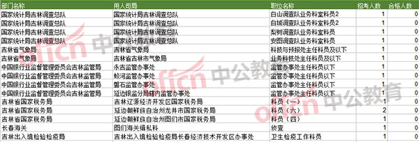 報名通過審核人數(shù)前十的職位主要集中在吉林省國稅局和吉林出入境檢驗檢疫局,具體信息如下: