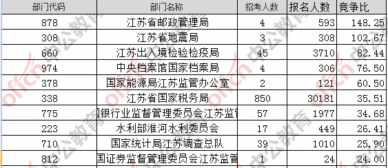 報(bào)名通過審核人數(shù)前十的職位主要集中在江蘇省國家稅務(wù)局、江蘇出入境檢驗(yàn)檢疫局,具體信息如下:
