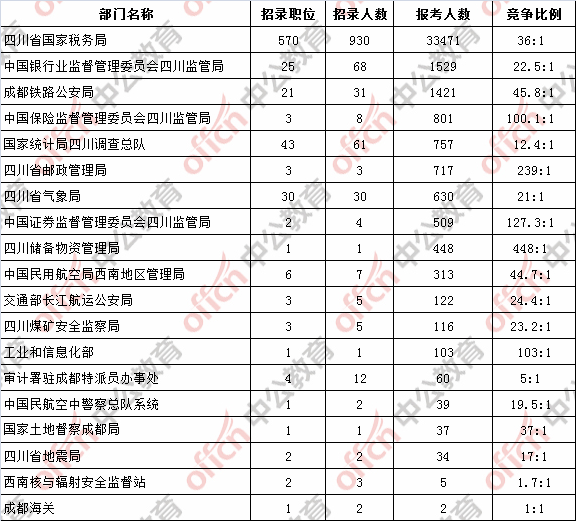 為幫助廣大考生更清晰的了解今日?qǐng)?bào)名情況,四川中公網(wǎng)校整理了已審核通過人數(shù)的部門,此數(shù)據(jù)供廣大考生參考: