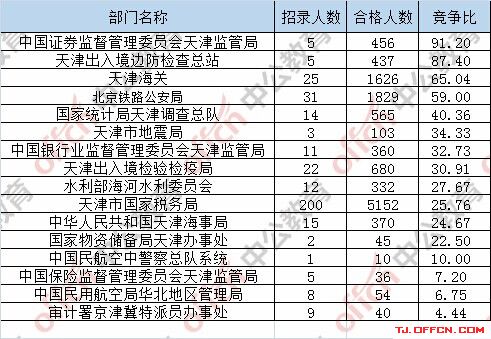 為幫助廣大考生更清晰的了解今日報名情況,天津中公網(wǎng)校整理了審核通過人數(shù)前五位的部門以及競爭比例最激烈的五大部門,供廣大考生參考: