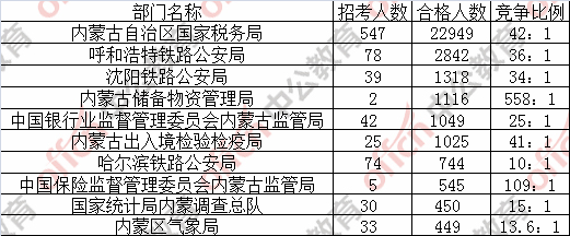 為幫助廣大考生更清晰的了解今日報名情況,內(nèi)蒙古中公網(wǎng)校整理了審核通過人數(shù)前十位的部門,供廣大考生參考: