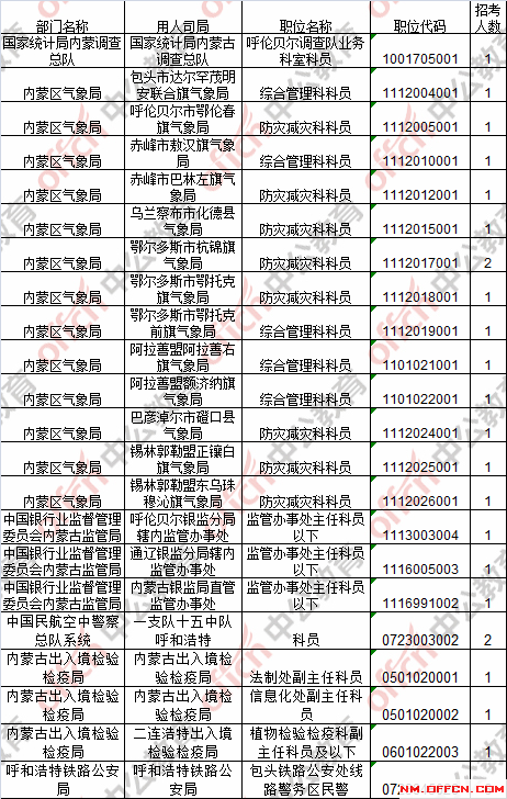截止到23日16時,工作地點在內(nèi)蒙古22個職位無人報考。具體職位如下: