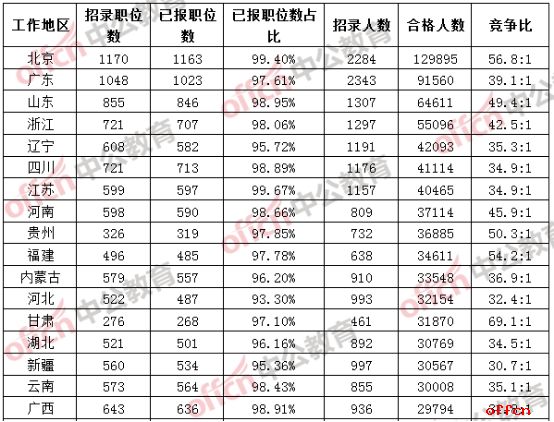 截止23日16時(shí),2017國家公務(wù)員考試報(bào)名最激烈的工作地區(qū)是甘肅,它打敗了中央部委集中地北京,也打敗了眾多經(jīng)濟(jì)發(fā)達(dá)地區(qū),成為了目前競(jìng)爭(zhēng)最激烈的地區(qū),甘肅共招錄人數(shù)276人,共31870通過審核,競(jìng)爭(zhēng)比為69.1:1。由于甘肅經(jīng)濟(jì)相對(duì)落后,工作機(jī)會(huì)相對(duì)較少,這也成為了其成為報(bào)名黑馬的原因之一。