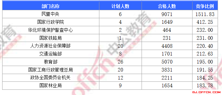 為幫助廣大考生更清晰的了解今日?qǐng)?bào)名情況,北京中公網(wǎng)校整理了合格人數(shù)前十位的部門以及競(jìng)爭(zhēng)比例最激烈的十大部門,供廣大考生參考: