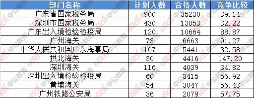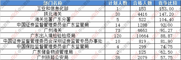為幫助廣大考生更清晰的了解今日報(bào)名情況,廣東中公網(wǎng)校整理了審核通過人數(shù)前十位的部門以及競爭比例最激烈的十大部門,供廣大考生參考: