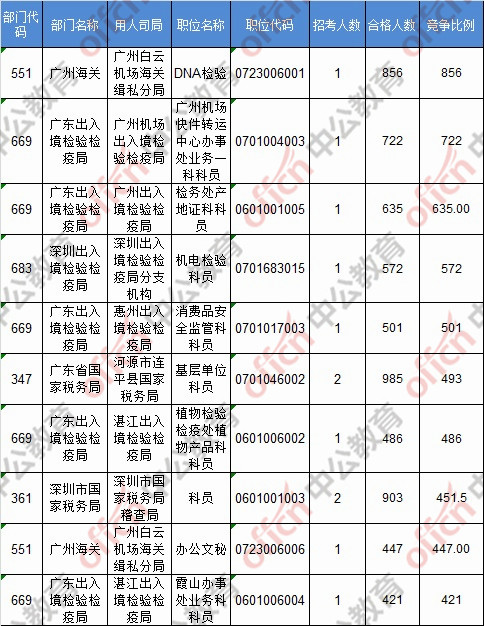 截止到24日8時,競爭比例的職位為廣州海關(guān)廣州白云機(jī)場海關(guān)緝私分局DNA檢驗(yàn)一職,招錄1人,截止到24日8時通過人數(shù)為856人。