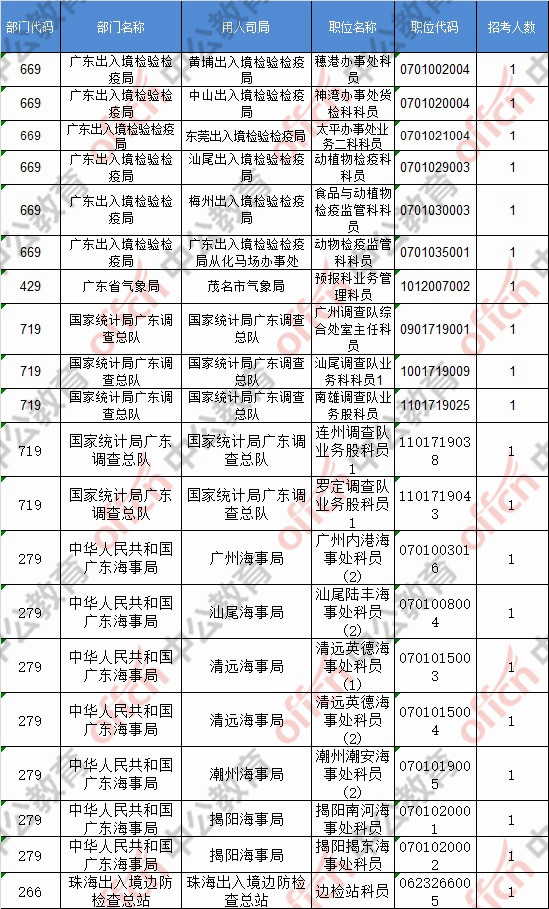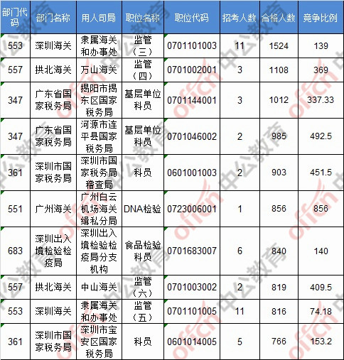 報(bào)名通過審核人數(shù)前十的職位主要集中在深圳海關(guān)、拱北海關(guān)、廣東省國家稅務(wù)局,具體信息如下: