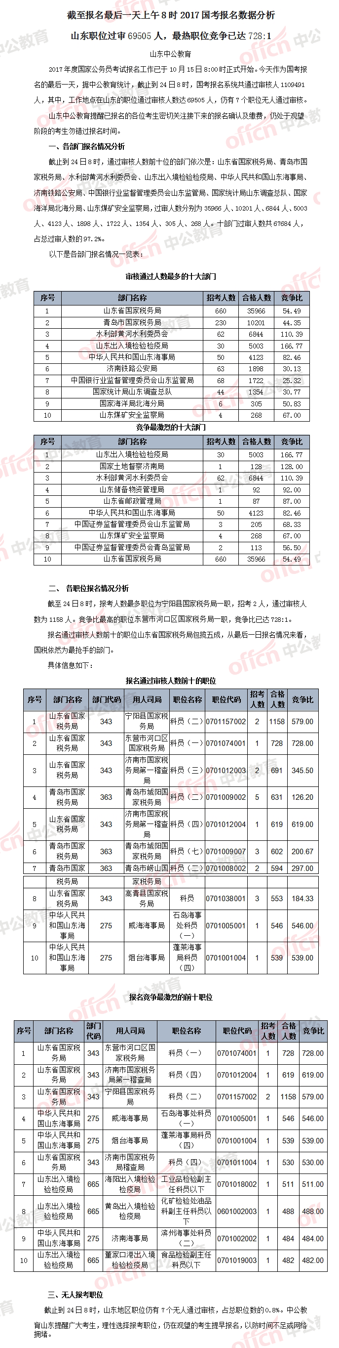 【截至24日8時(shí)】2017國考報(bào)名山東職位過審69505人,最熱職位競(jìng)爭(zhēng)已達(dá)728:1