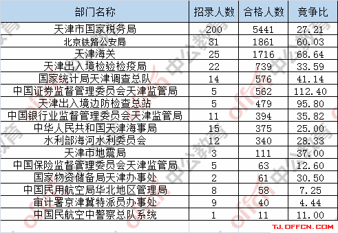 為幫助廣大考生更清晰的了解今日報名情況,天津中公網(wǎng)校整理了審核通過人數(shù)前五位的部門以及競爭比例最激烈的五大部門,供廣大考生參考: