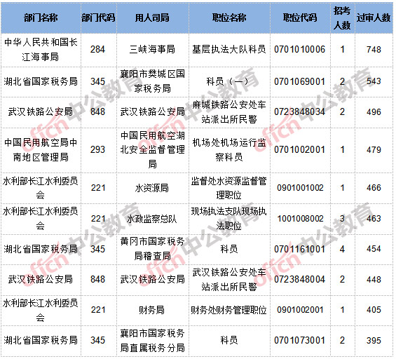 報(bào)名通過(guò)審核人數(shù)前十的職位