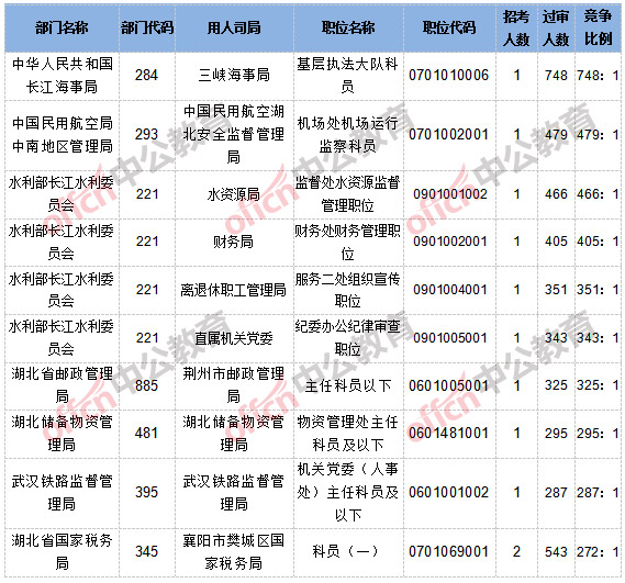 點(diǎn)擊查看:2017國(guó)家公務(wù)員考試湖北地區(qū)無(wú)人報(bào)考職位一覽(10月24日8時(shí))