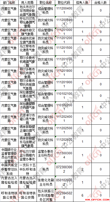 截止到24日17:30時(shí),工作地點(diǎn)在內(nèi)蒙古17個(gè)職位無人報(bào)考。具體職位如下: