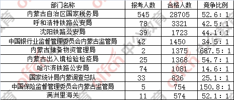 為幫助廣大考生更清晰的了解今日?qǐng)?bào)名情況,內(nèi)蒙古中公網(wǎng)校整理了審核通過人數(shù)前十位的部門,供廣大考生參考: