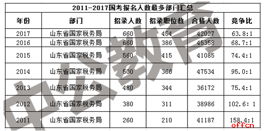 從2011國考至今的報考情況來看,山東國稅局一直問鼎國考,連續(xù)7年奪得國家公務員考試報考人數(shù)最多的部門,首先這與其招考人數(shù)較多有一定關系,同時山東的地理環(huán)境優(yōu)勢以及接受的教育都有一定關系。