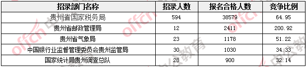 截至報(bào)名結(jié)束,貴州招錄部門中各大部門均有人員報(bào)考。