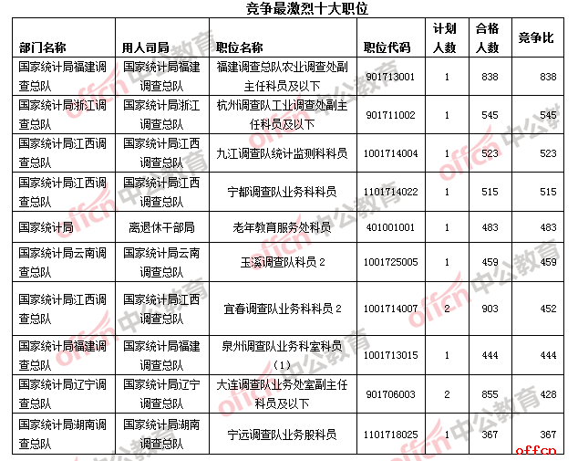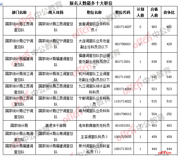 2017國(guó)考報(bào)名結(jié)束:統(tǒng)計(jì)局過審45491人 平均競(jìng)爭(zhēng)比51:1