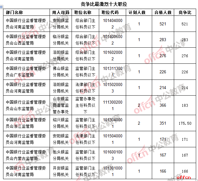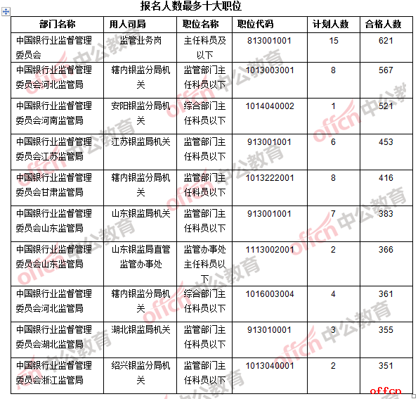 2017國考報(bào)名結(jié)束:銀監(jiān)會(huì)過審43066人 平均競爭比36.5:1