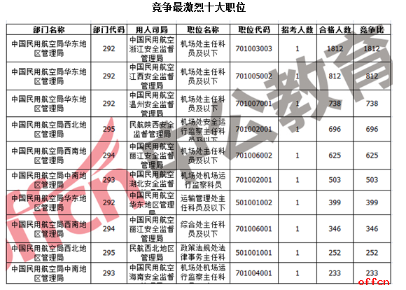2017國(guó)考報(bào)名結(jié)束:民用航空管理局過(guò)審11441人 平均競(jìng)爭(zhēng)比53:1